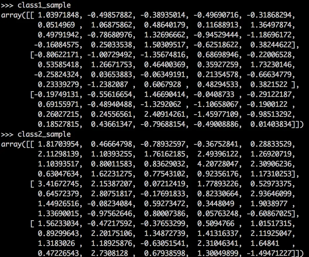 1 all_samples = np.concatenate((class1_sample, class2_sample), axis=1)