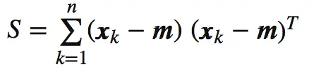 3 scatter_matrix += (all_samples[:,i].reshape(3,1) - mean_vector).dot((all_samples[:,i].reshape(3,1) - mean_vector).T)