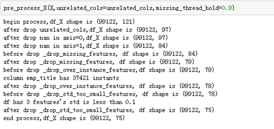 可以从打印出的日志上看出,经过上一步的清洗步骤,已经从原来的121个特征变量,降成75个特征变量。