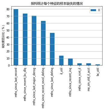 由图可以目前缺失最高的mths_since_last_record在80%左右,在预设范围内,整体情况还相对理想。