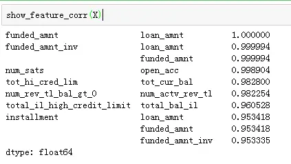 从上述的相关系数的关联情况可以看出:funded_amnt,loan_amnt,funded_amnt_inv这几个特征的关联比较强,仅保留funded_amnt,去除其它两个特征,经过清洗后只剩下了73个特征。