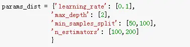 因为考虑到样本的不均衡性,交叉验证的方法使用StratifiedShuffleSplit方式来划分样本,同时学习器使用GBRT算法,同时RandomizedSearchCV进行最优参数选择。目前只是设置了基本的参数: