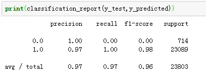 可以看出整体平均的精确度和召回率和F1值还是可以的,不过对于样本0的召回率和F1值为0,可能需要进一步优化。