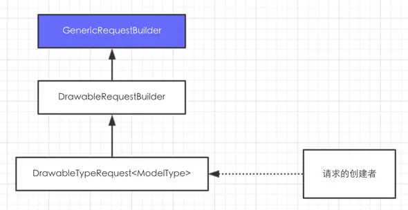 在 Glide 知识梳理(1) - 基本用法 中,我们学习了许多load的重载方法,可以从url、SDCard和byte[]数组中来加载。这一步的目的是根据load传入的类型,创建对应的DrawableTypeRequest对象,DrawableTypeRequest的继承关系如下所示,它是Request请求的创建者,真正创建的逻辑是在第三步中创建的。