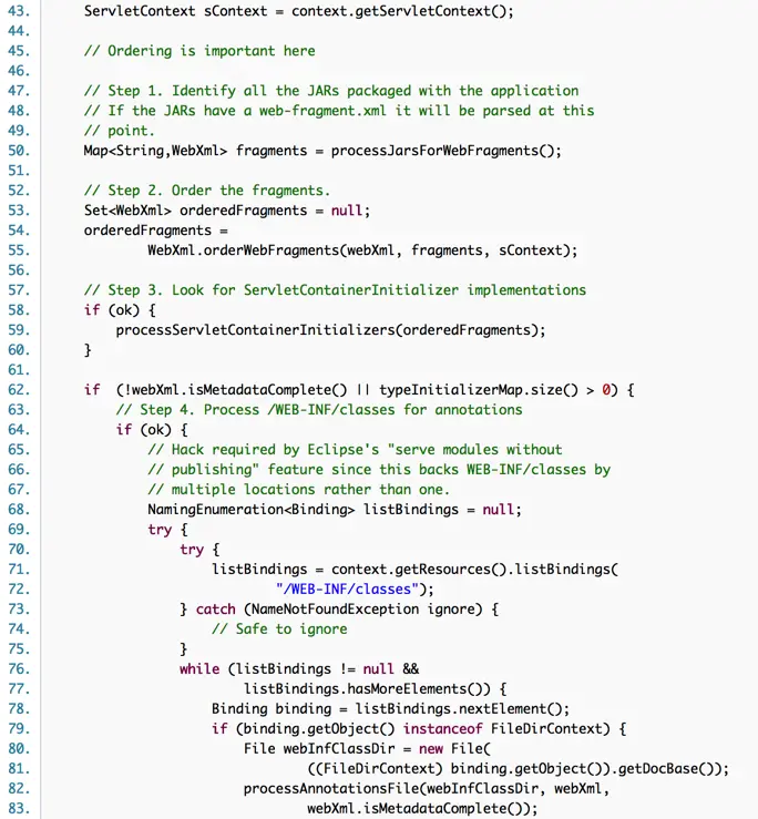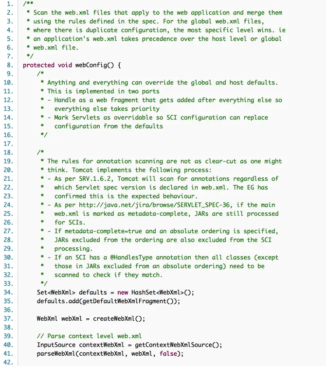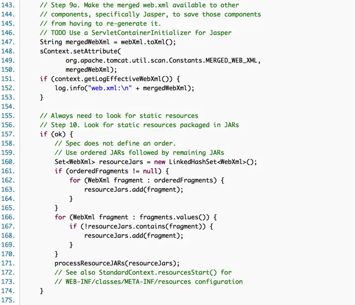 看到这里可以猜到 Tomcat 容器加载 web 应用时必定会有对于每个应用的 web.xml 文件的解析过程,本文就来看看这个解析过程。