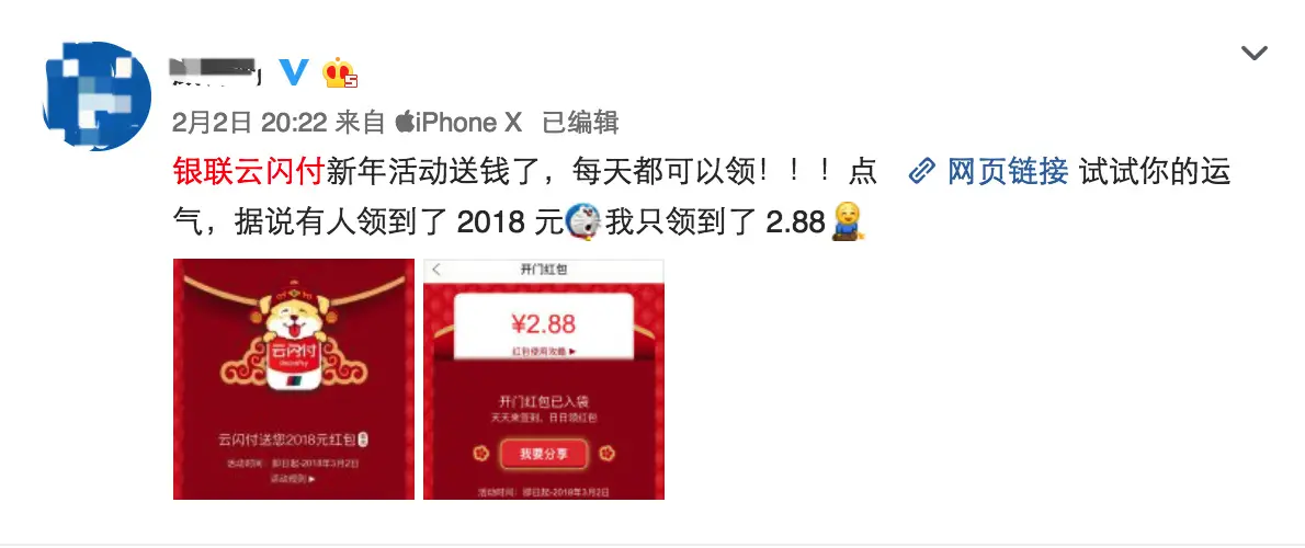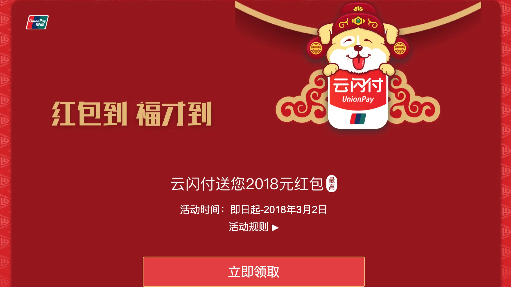 最近银联在推一个活动,登录云闪付APP参与新春红包活动,对,就是下图这个活动。