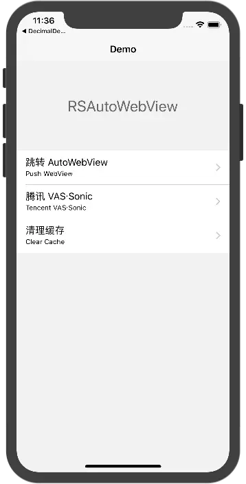 | Main.storyboard | Auto-adapted AutoWebView Framework | Tencent's Seconds WebView Framework | Clear Cache Operations |