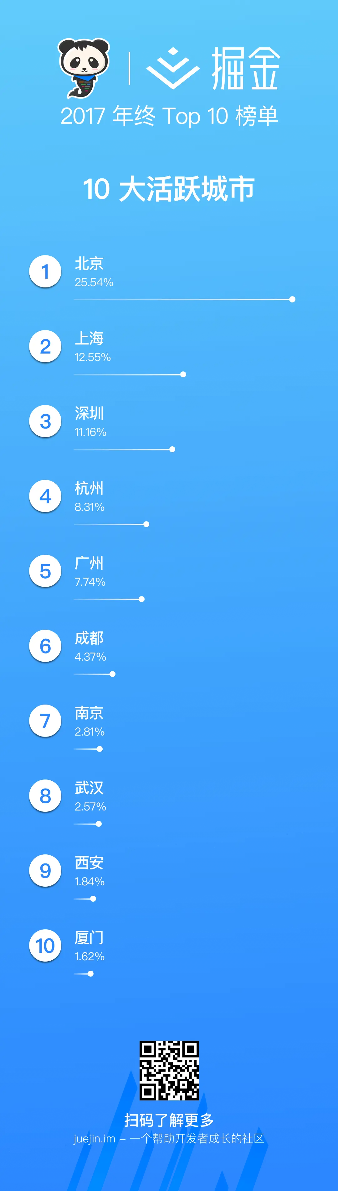掘金开发者城市分布