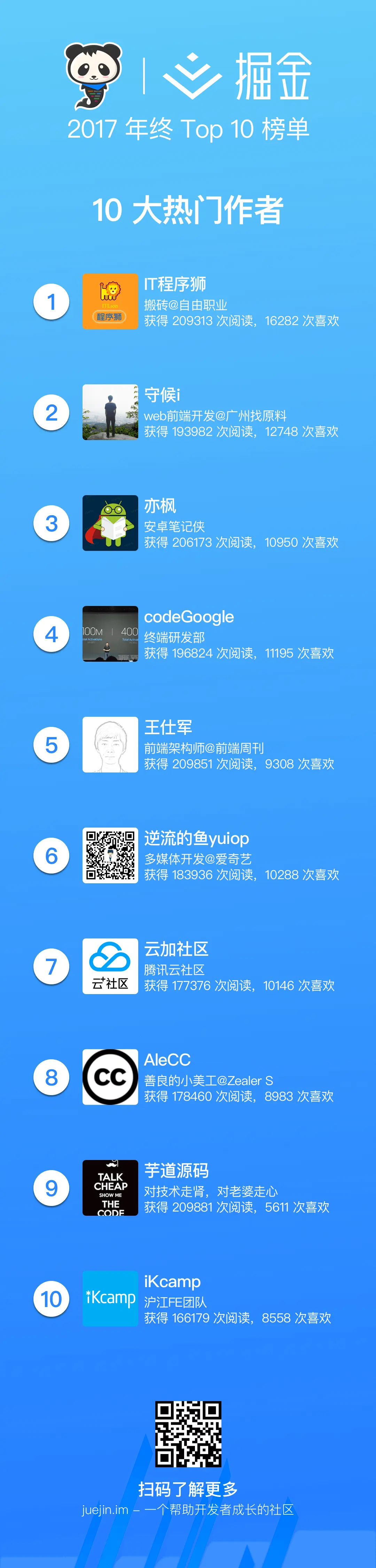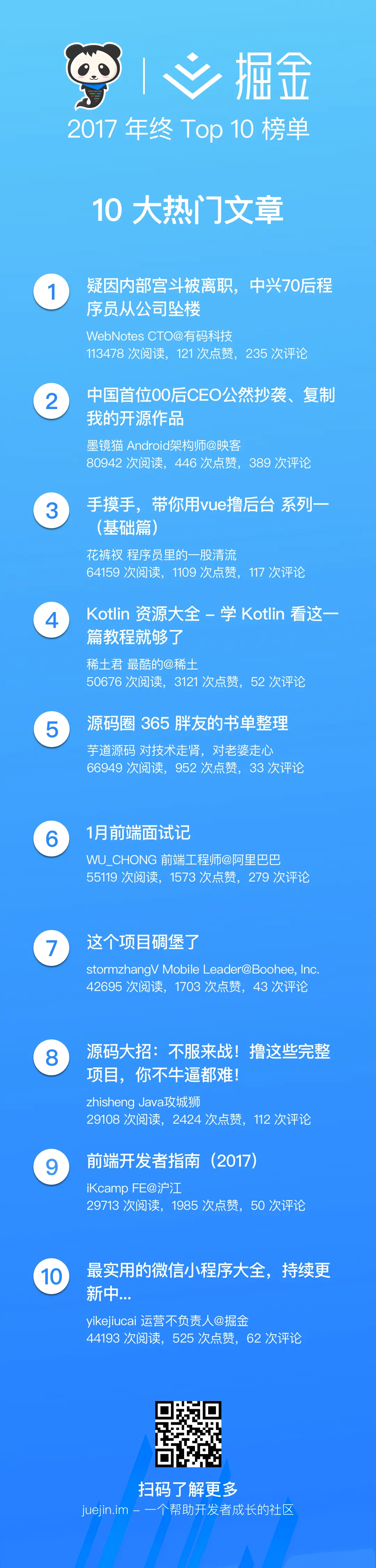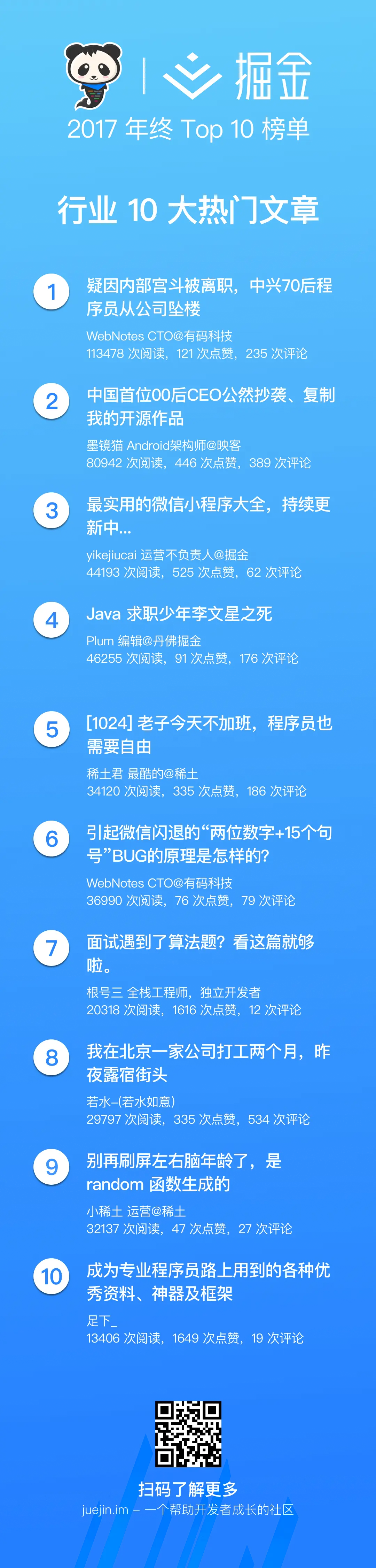 掘金 2017 年终 Top 10 榜单