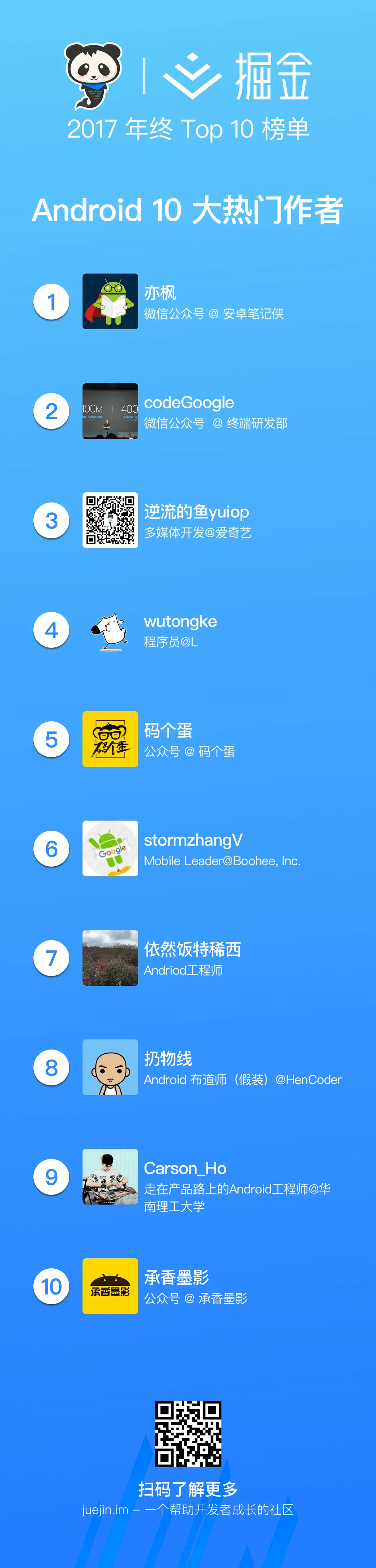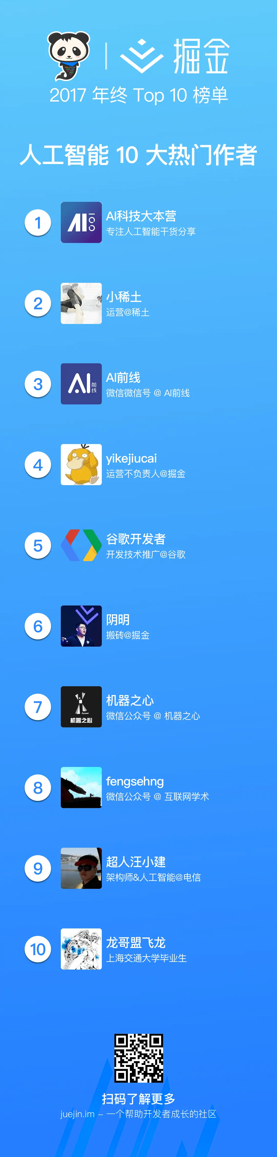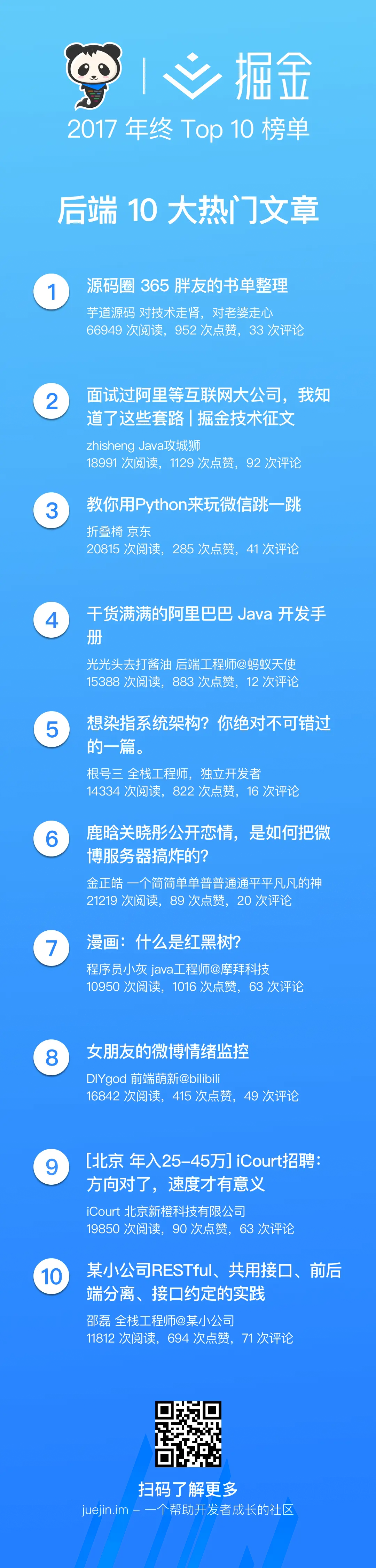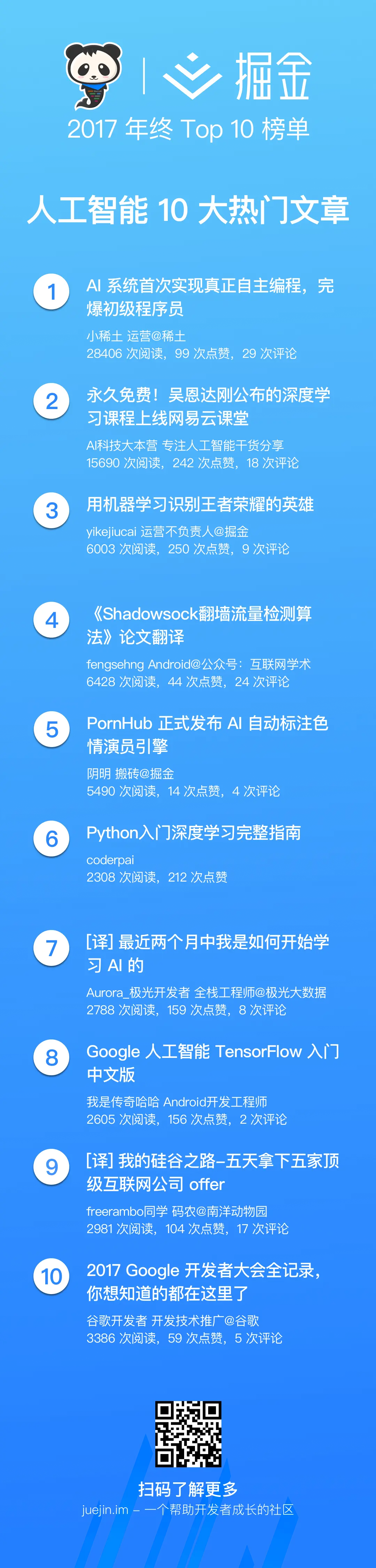 掘金 2017 年终 Top 10 榜单