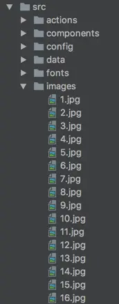 1、在 src 目录下添加 images 目录和一些图片,如下图:(图片尺寸全部是 260 * 260)