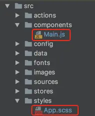 主要的代码逻辑在 Main.js中,主要的布局样式在 App.scss中。如下图: