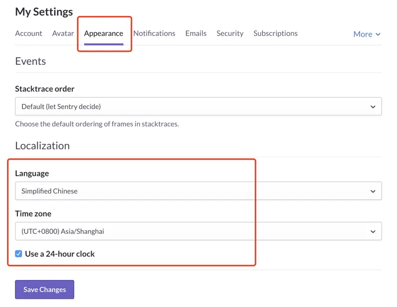 在这里选择好语言和时区,(时区还是很重要)。点击保存。然后再返回到之前的页面。就可以看见Sentry的Dashboard页面是中文了。 3. 点击新建项目,Sentry是可以支持Vue项目