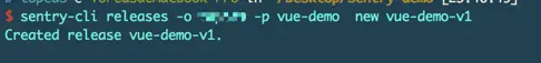 注意"release名称", 官方有明确声明, 在上传sourcemap到sentry这种做法下,必须要指定一个release。在这里我们就当发布了我们的项目的第一个版本名叫vue-demo-v1。 然后点开你在sentry中vue项目里面的里面你就会发现存在这个版本号了。
