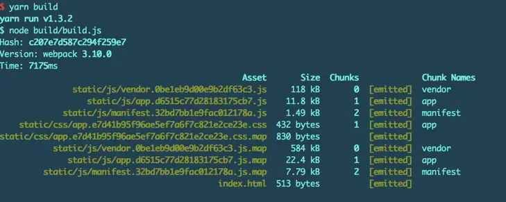 vue 构建出的生成环境的代码是在根目录下面的dist文件下面,(vue-cli是的build指令默认是会生成sourcemap,就是下面的map文件)