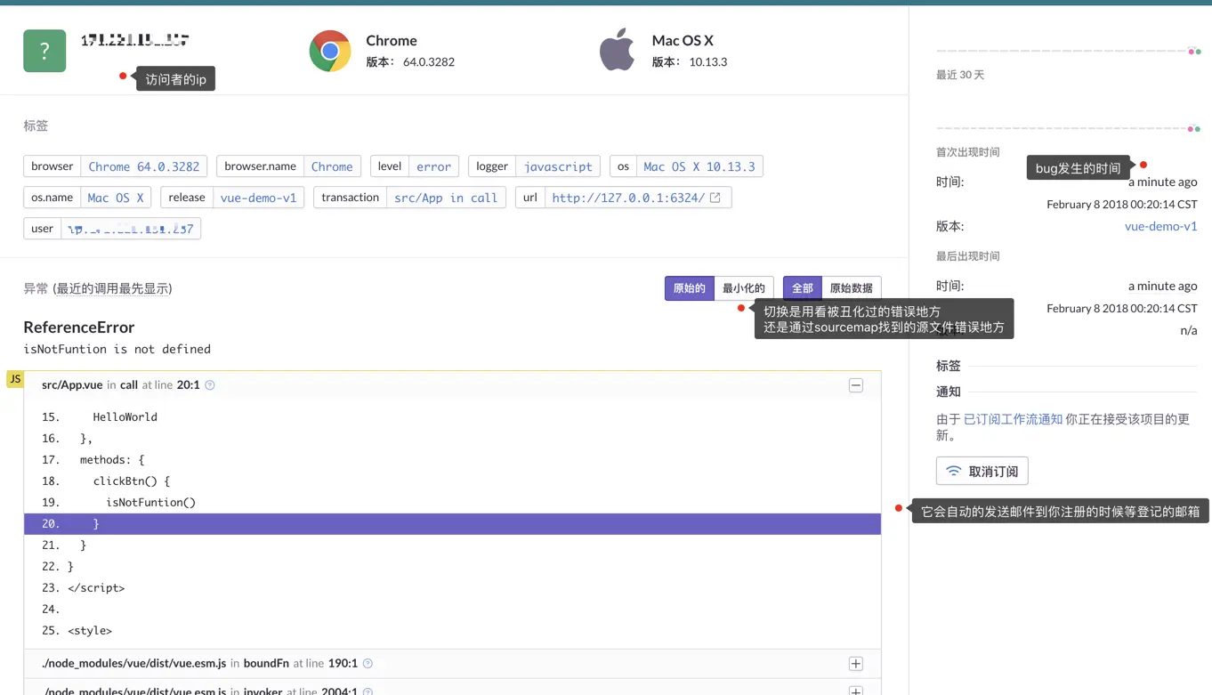 好吧,现在来看下如何接入Vue项目配合sourcemap快速在源文件中找到bug的所在位置。