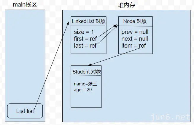 这次我们带上内存图来分析,会更直观一些,首先用无参构造来创建一个对象: