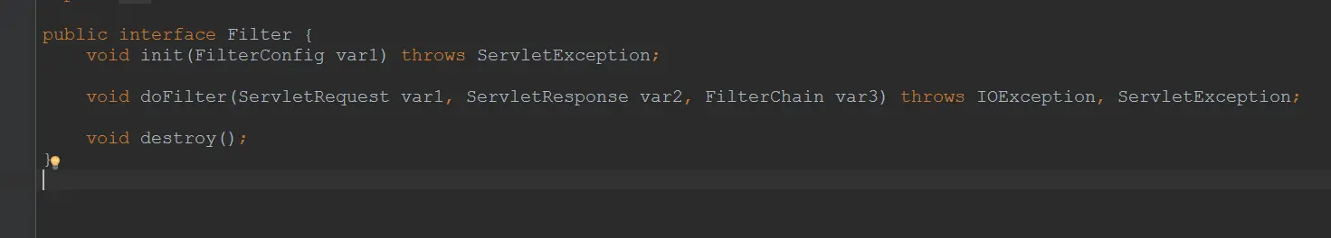 只要Java类实现了Filter接口就可以称为过滤器!Filter接口的方法也十分简单: