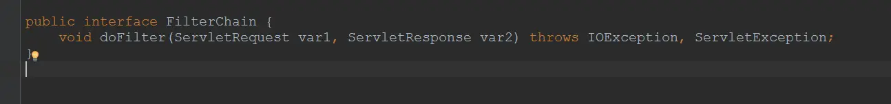 上面已经说过了,过滤器的doFilter()方法是极其重要的,FilterChain接口是代表着所有的Filter,FilterChain中的doFilter()方法决定着是否放行下一个过滤器执行(如果没有过滤器了,就执行目标资源)。