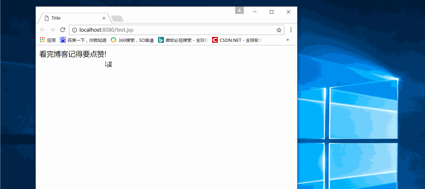 test.jsp页面并没有任何的输出(也就是说,并没有访问到jsp页面)。