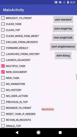 * FLAG_ACTIVITY_MULTIPLE_TASK both of these behaviors are modified to skip