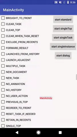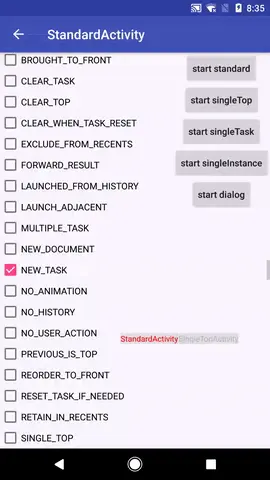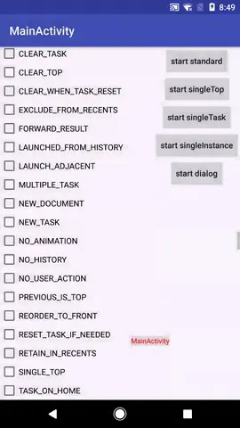 这么多估计大家一看就晕了,我一开始也是这样。不过,仔细看每一条的文档,把它添加到你要启动的Activity上,然后观察Activity的行为,这样就容易弄明白它的含义。
