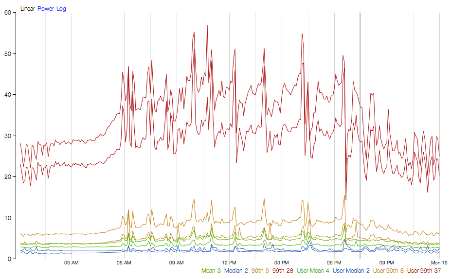 下图是Netflix Hystrix官方提供的一个Hystrix命令的性能监控,该命令以每秒60个请求的速度(QPS)向一个单服务实例进行访问,该服务实例每秒运行的线程数峰值为350个。