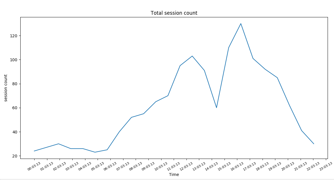 除了将日常脚本固化到函数中外,Python还可以用来收集一些数据库性能数据。比如最简单的,收集一段时间内的数据库会话总数,并绘制成曲线: