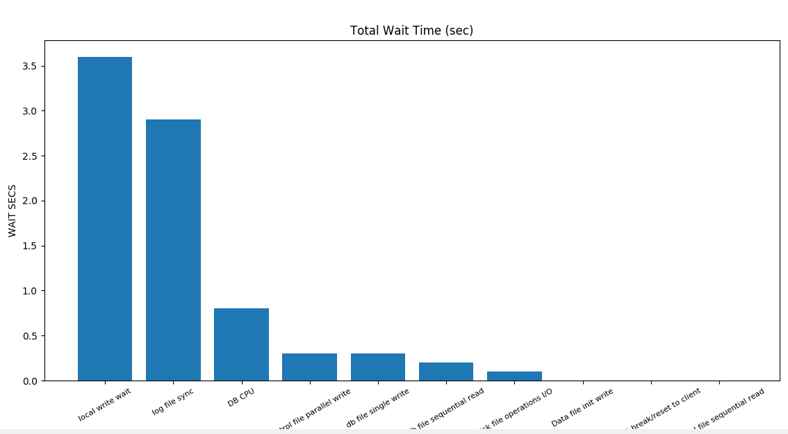 我们经常使用的AWR报告实际上是一个HTML 文件,可以使用python的爬虫技术爬取我们关心的数据。下面以一个AWR报告为例,分析其中top events 的"Total Wait Time (sec)"列的数据, 并生成图表展示。