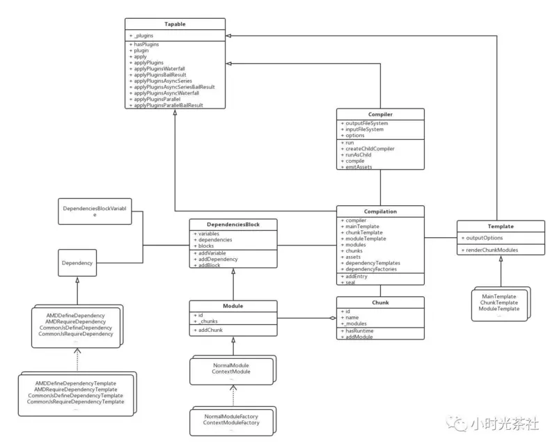 跟第一篇文章类似,我们不会将所有 webpack 中的对象都拿出来讲解,而是整理了一些比较核心的概念。我们可以先看看下面的类图: