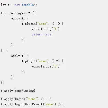 - applyPluginsBailResult3(name,param1,param2,param3)