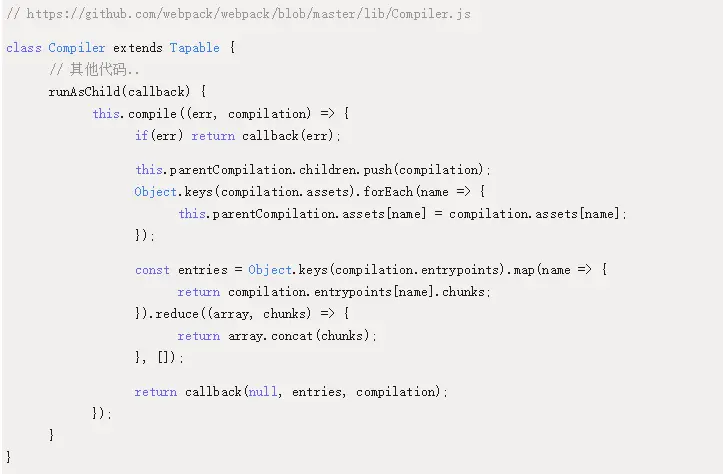 在第一篇文章讲解 Compilation 实例化的时候,有略微提及到创建子编译器的内容:
