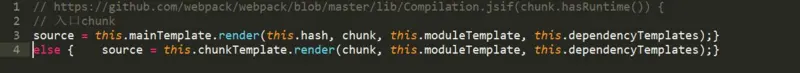 首先 chunk 的渲染入口是 mainTemplate 和 chunkTemplate 的 render 方法。根据 chunk 是否是入口 chunk 来区分使用哪一个: