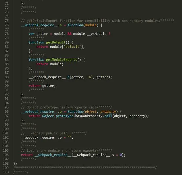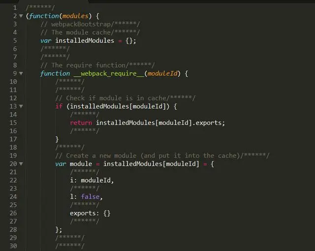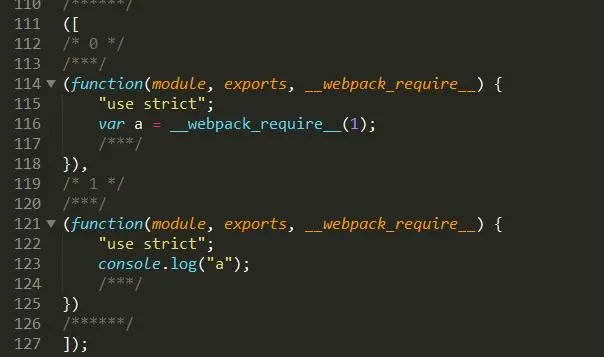 let a = require("./a")我们来看看使用 webpack 构建后最终的文件: