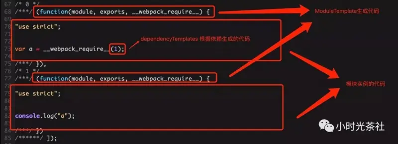 其中,从 1-113 行都是 MainTemplate 生成的启动代码,剩余的代码生成如下图所示: