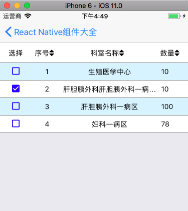 React Native 表格组件:react-native-data-table,纯JS组件,功能强大。支持自定义表头、行、单元格样式。支持编辑单元格和选择列。还能显示子行。