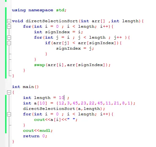 通过设置标志位,将标志位的数字与标志位后最小的数字进行交换,递增标志位,知道标志位到达最后一位。