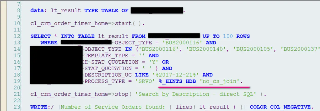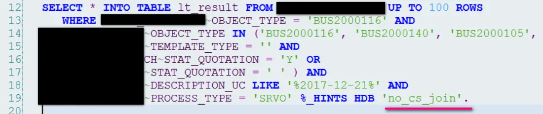 在ABAP的OPEN SQL里使用方法类似,把 %_HINTS后的HDB替换成指定数据库提供商的代号,再加上数据库提供商特定的Hint.