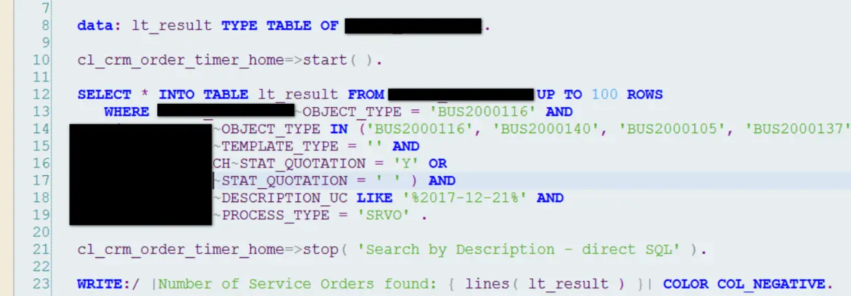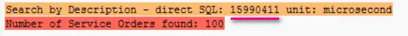 我的一个实际工作中的例子:这个简单的报表从HANA数据库中读取100条描述信息包含了文本”2017-12-11″的服务订单: