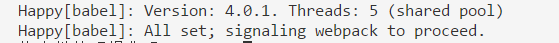 这是 happypack 输出的,如果想关闭它,在实例化 HappyPack 插件时增加 verbose 参数并将它设置为 false 即可。