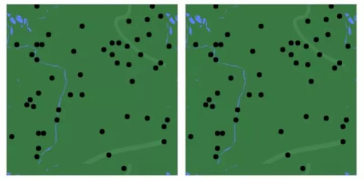游戏为对战模式,游戏开始双方玩家会收到一模一样的两张地图,上面布满了随机分布的点。