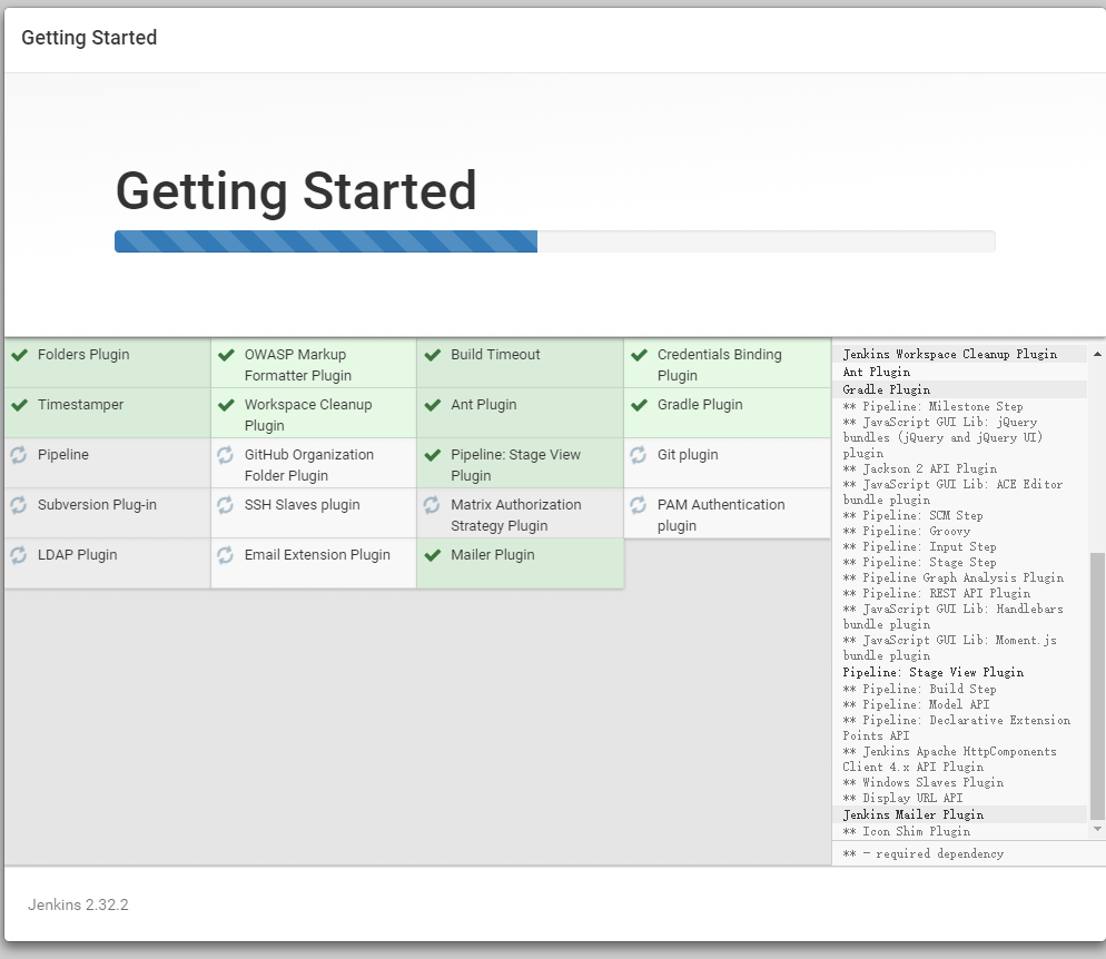 1.1 启动容器: 由于Jenkins运行在Tomcat容器中,因此我们将容器的8080端口映射到宿主机的8080端口上:
