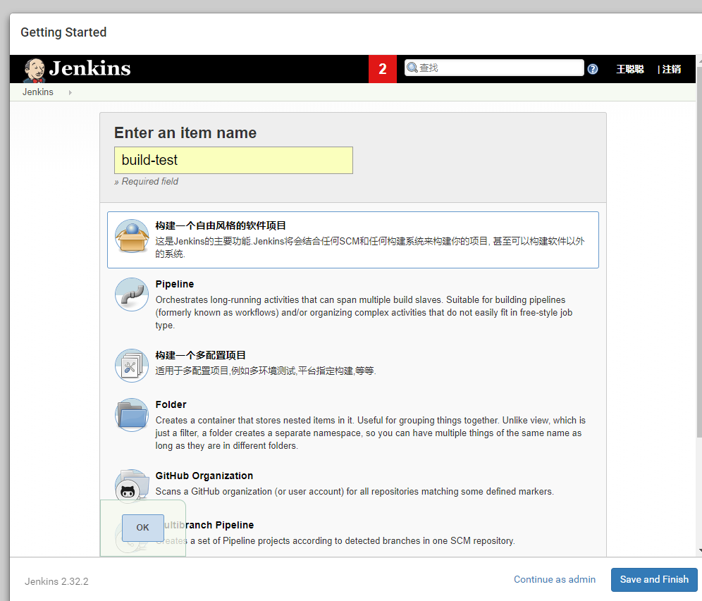 1.2 在Jenkins中创建项目: