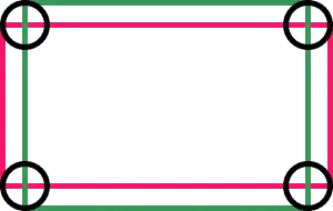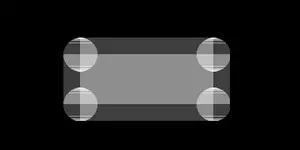 绘制出一个圆角矩形,实际上,可以通过使用填充了相同的颜色的2个矩形和4个圆圈来实现,这几个图形的摆放如下图所示。