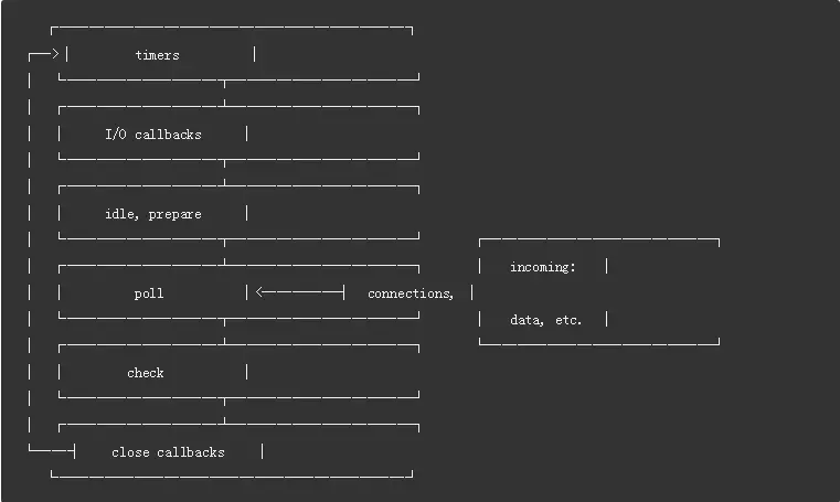 event loop按照执行顺序包括六个阶段(实际更多,只是node和我们说:你们不需要关心那些😊):