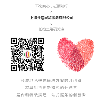 上海开宸,始终如一紧抓发展机遇,将“颠覆式创新”理念渗透到会展服务的理念中,在展会地毯进口、展会地毯铺设工艺的征程上,高扬突进的旗帜,上下延展、辗转腾挪,力求拓展生存与发展的空间。