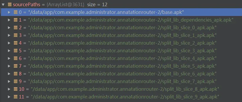 base.apk一般是不包括我们自己写的代码,这个方法调用之后结果如下:
