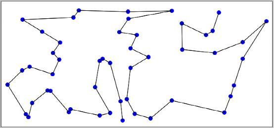 };上面代码的原理如下:在城市的道路上取两个“切点”,这就意味着把父本和母本的特性都各自分割成了三份,父本和母本有着相同的切点。这些切割的规模是随机的,然后通过交换父辈的三份来创建两个子代。例如,观察下面的父本和母本。