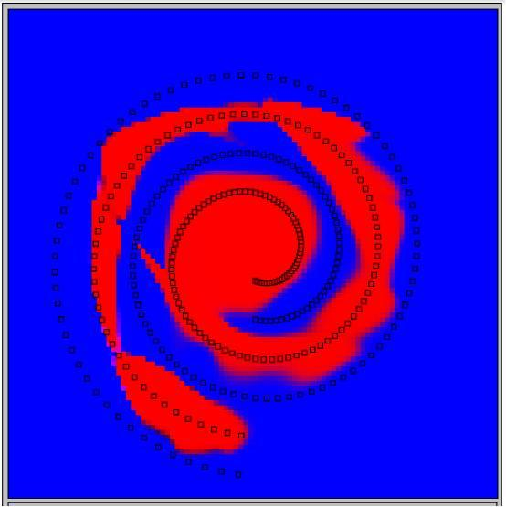 这个实例可能需要一分钟(大约),才能让成熟的蜂拥集群出现。即使这些集群出现了,它们也经常会再次分裂和重组。重启时点击“Clear”(清除),或者也可以点击“Big Bang”(大爆炸模式),该模式不会使用任何随机的初始化,而是将粒子统一放置在面板中央,并且以粒子设定的“复杂模式”迅速向外移动。