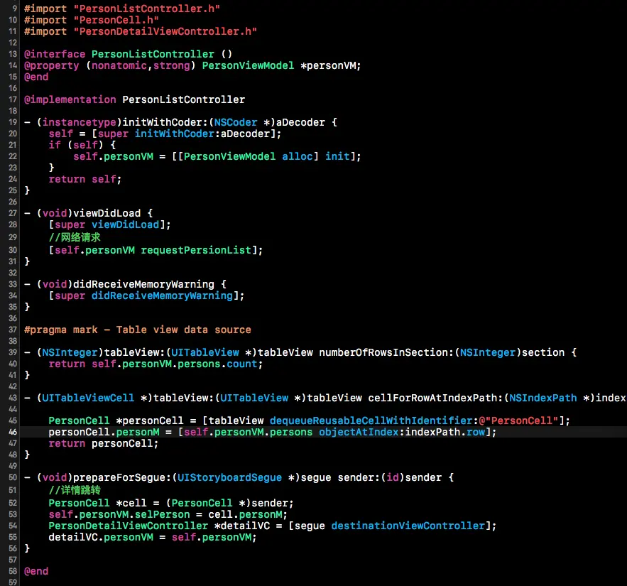 在PersonDetailViewController,我把整个的PersonViewModel传了过去,而不是只传了一个选中的Person。